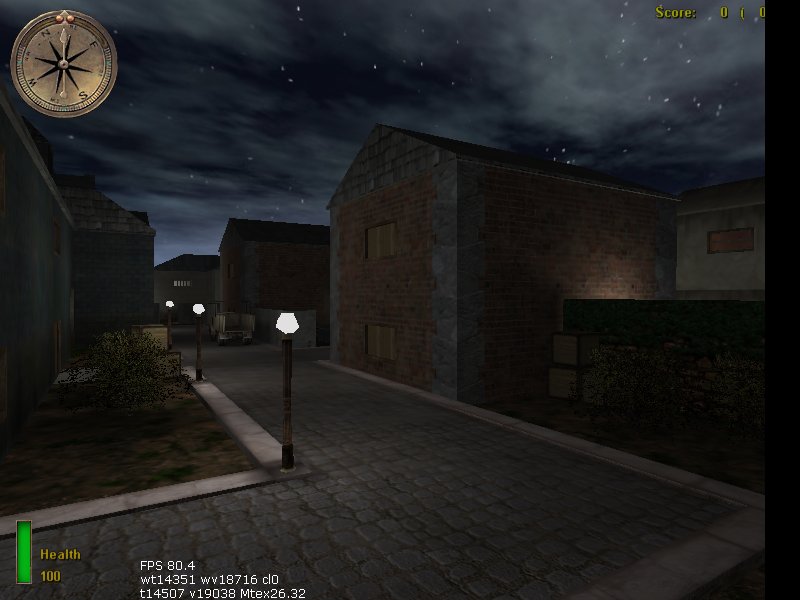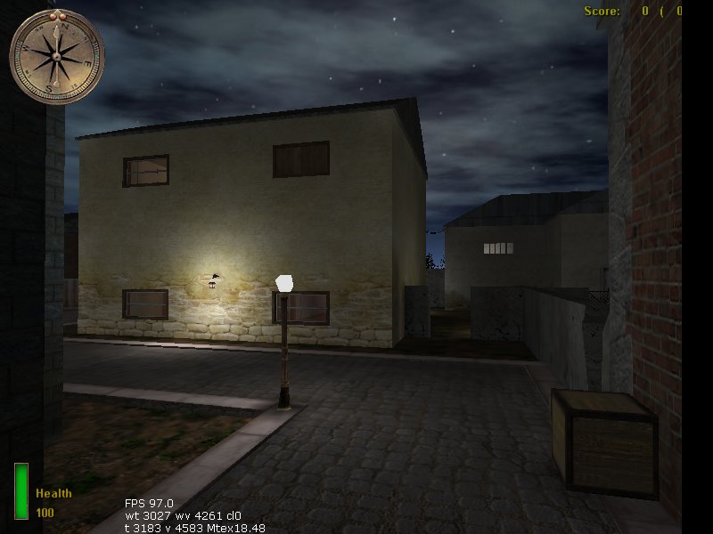 The first thing that struck me was how dark the map was. Ok so I know its set at night but pitch black areas in a map are undesirable, especially when it might stop a player decerning routes through the map. What surprised me was the lack of lighting indoors. Most rooms only had 1 light, which was barely adequate to light them effectively. Where there was lighting, there were light sources (ie lights) which is a plus point and always good to see.