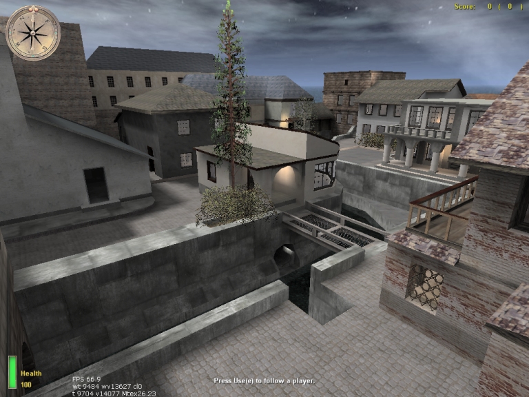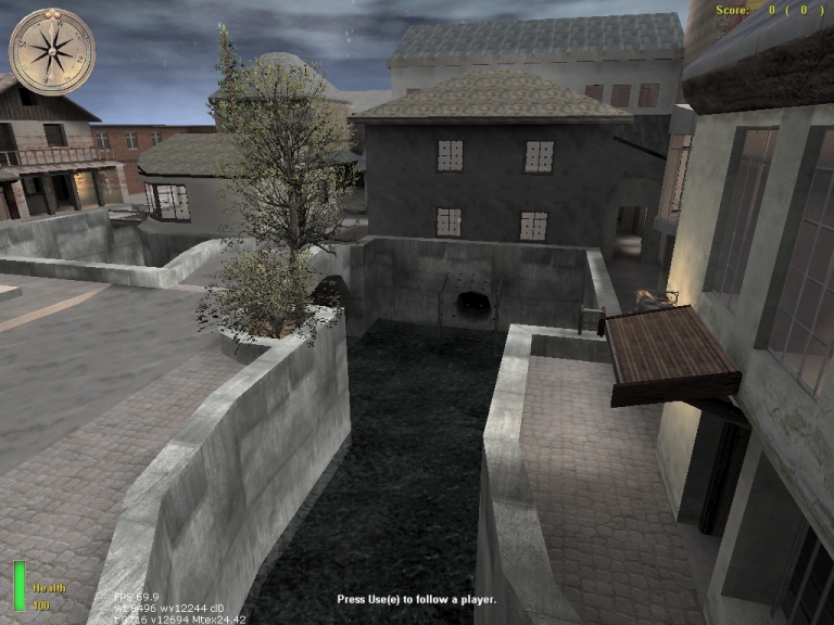 Dorf places you inside a medium sized town that has a river running though it, splitting it in almost two sections. You will see right from the start that this map lacks one thing...dead areas. Unlike most maps you wont find only one or two routes to move around in this map. From the look of the layout this map should produce great gameplay for any weapon you choose for battle.