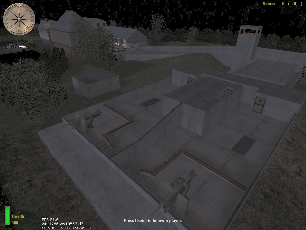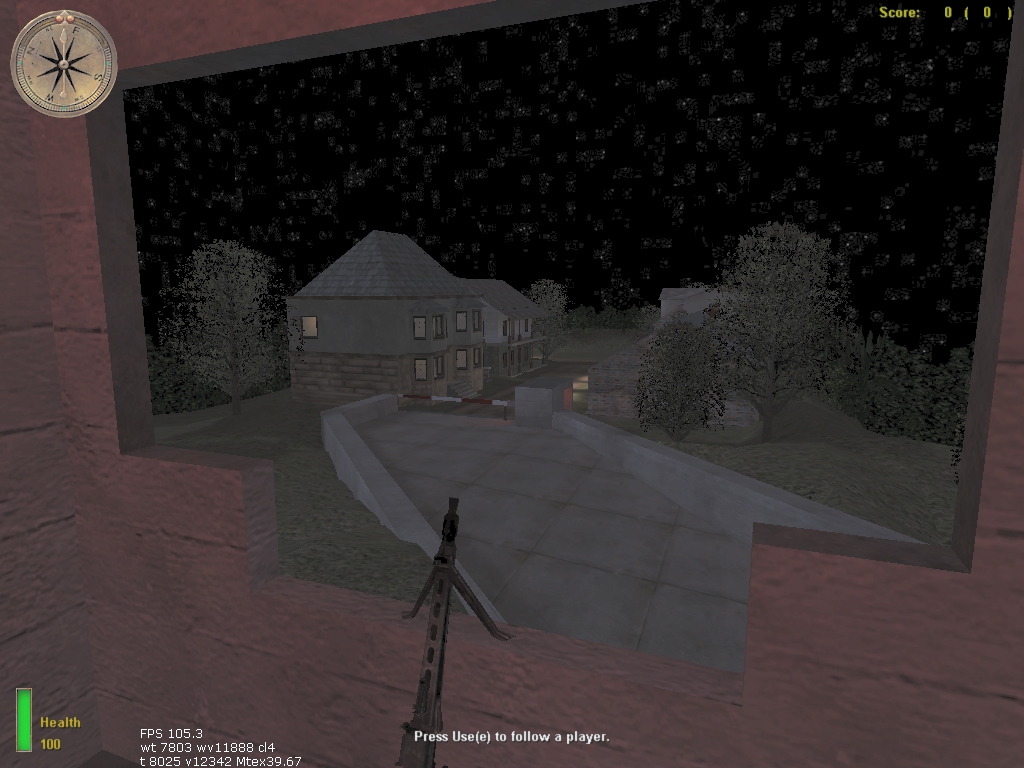The performance of this map is quite good, the FPS was high in most parts of the which made it very smooth all through the game until you got into the houses where it dropped to 30 from around 70 - 90 but that is not a real problem as that should not cause you much trouble. I didnt notice any Game Flaws accept maybe he could have made the switch in the guard house move up or down when used to open the main gate, even though you can just walk around it.
