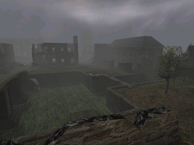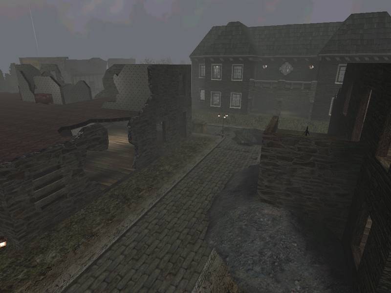 The fog is very important to get this map playable, as it's the only barrier between the two ends of the map. The map doesn't appear to be fully vised, that is, none of the buildings block sight. Still, my mtex counter peaked at 15 mega-texels on 1024 * 768 highest detail, which is neat and can be compared to original maps.