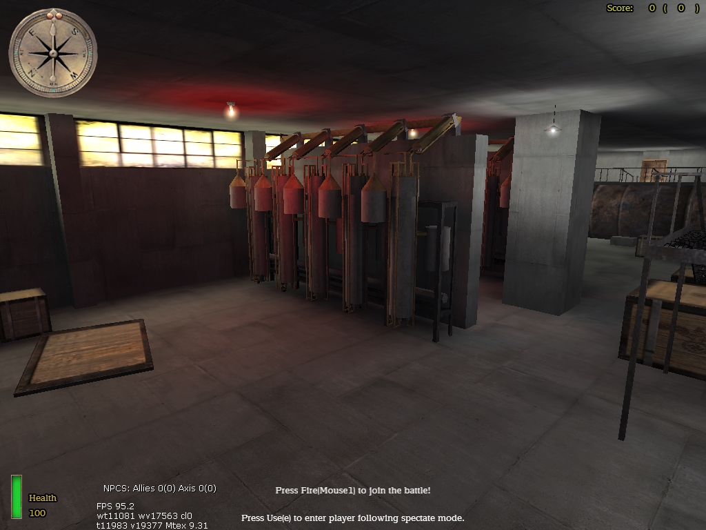 This was the area I was really looking forward to see. After all, this is a very large map and since it consists of only one large building I already had it in my mind that in this area it would fail. Well then came time to play. A server had to be arranged since no other server had this map in rotation when I was looking for it. Yes this is the weak point of the map simply due to its shear size but I don·t think that it fails. Many players claimed the obj could be reached as quickly as in the original V2 rocket map but for new players across the screen would read, "I am lost". I gave it above average score based off my limited time playing it. I think with some time the obj game flow would come easier. I think playing on a server that allows all weapons would increase the variety of gameplay on this map since all styles could really take advantage of this. The server I was on only allowed machine guns and rifles which without getting into a large discussion takes away from this great game rather then the intent to make it better...like I say "if you haven't figured out how to play the game with and against ALL the weapons by now, your way behind"...lol.