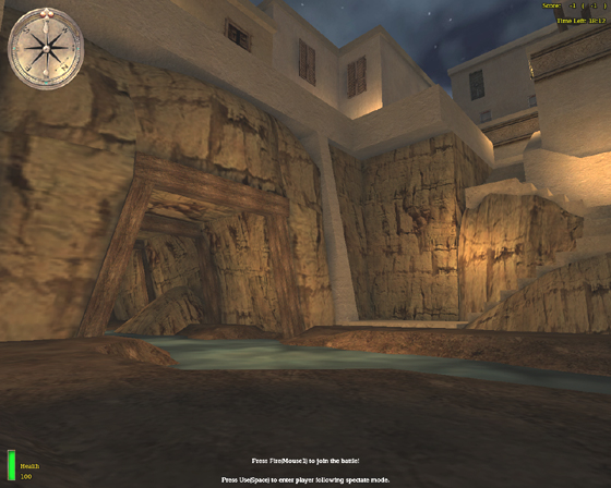 The architecture is wonderful, it makes you feel that you are in North Africa :) . I can tell you that it was hard to find bugs (architecture faults) but I found them. The bugs are minor bugs, so it doesn’t affect the gameplay. The fps is extremely good; you can compare the fps with stock maps. Making a good fps is hard, I know that from my own mapping experience. There are two little things that the mapper forgot. He forgot to add a .min file, so the first time you load the map you don’t see a status bar. He also forgot the add a precache script file. These are the important things the mapper needs to add. These are minor things, but every stock map has it and almost every map has it too (unless the mapper forgot the add these things :P )