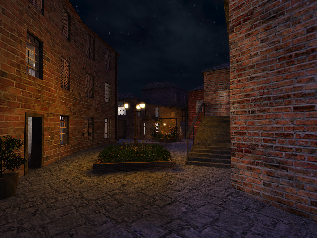 The map is set at night, which leaves some challenge to get the lighting right. The lighting I found has 2 small problems: there is too much of it and it is too colourful. During wartime the first to break are the street lights, so I found it disturbing to find them all alight. This is even worsened by the bright colouring of the lights, which inevitably makes the map look fake and bland. Fewer point lights and primarily a soft moonlight would have fit this map much better, and not have ruined the atmosphere.