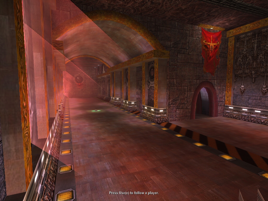 I got a feeling the architecture was only there to support the textures, it was a little basic. But, it got the job done, and their are some nice touches. Some nice basic meshwork, for arches and twisting corridors, some nice, but slightly blocky chandaliers and such all contributed to the basic atmosphere which gave the map a 'sleek' feel; built for practicality, not style.