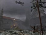 The dense fog seems to be the only thing preventing the player from seeing through the entire map. This method works very well actually, and has accomplished that my mtex counter didn't pass the 23 mega-texels on a 1024 x 768 resolution at max detail. Although it's pretty high for the level of detail provided, this number is acceptable and can be compared with most of the original maps. The random explosions all throughout the map and the planes flying-by have a bad impact on the framerate though. Therefore this map aims for higher spec systems and it's definately unplayable on mine.