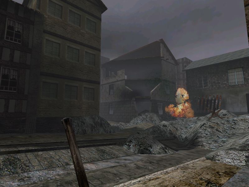 First, this map is very hard to navigate. You won't get lost, but most buildings are hard to enter and a couple of doorways are too low to walk through without crouching. Apart from that, I found one room which you can enter by jumping down a floor but I couldn't get out anymore. Finally, all the explosions and fire everywhere don't seem to hurt the player, which is caused by a script error that I won't describe in detail now.