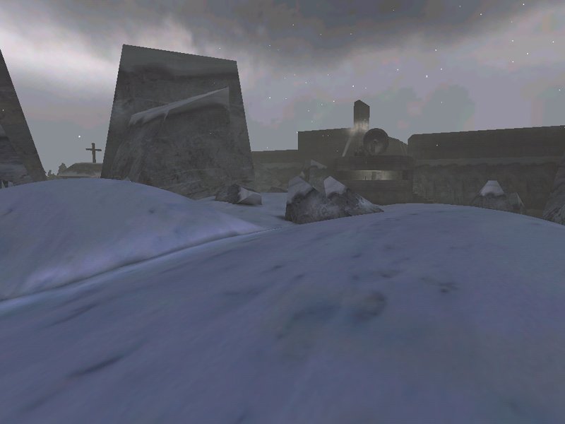 This is a small map containing a minor German V2 launch facility situated in a snow-covered, rocky landscape. Two gunnery domes are to protect the V2 rocket and the radar dish on top of the bunker. Under the ground there are several long corridors providing back door access for the Allies.