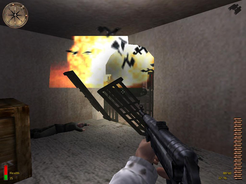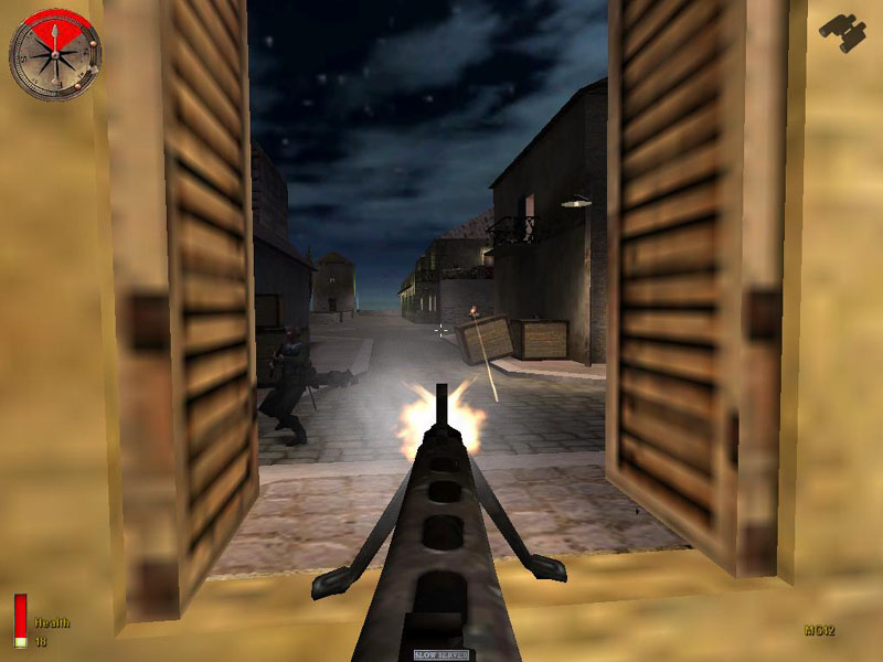 The use of MG42 gunners keeps the level longer and more interesting as you have to figure out how to get around them, there being infinite enemy spawners to man the guns. The long list of objectives keeps up a good flow, and gives a good deal of satisfaction when you complete each one. An annoying feature was enemies spawning in houses you have already cleared, which makes it very hard if you are low on health. Some cool scripting is seen, such as soldiers vaulting over a wall, and the P47 bombing the 88.