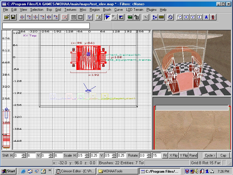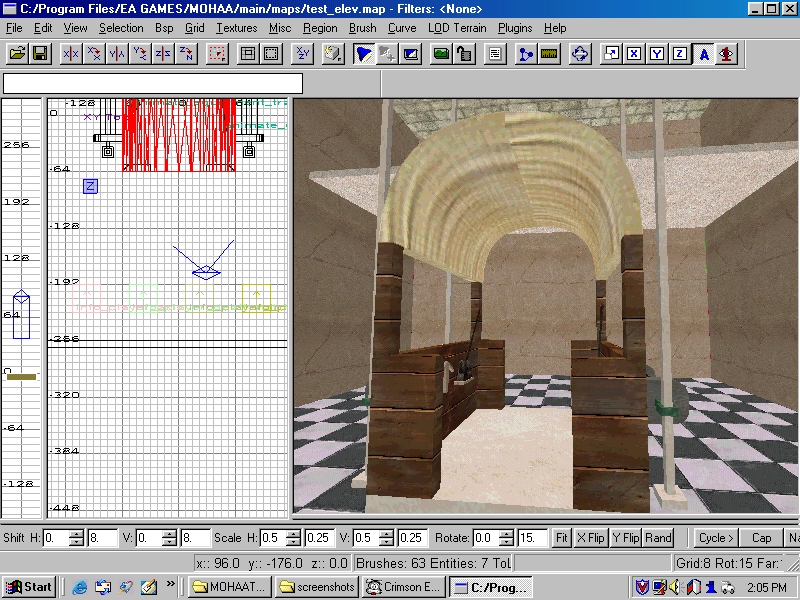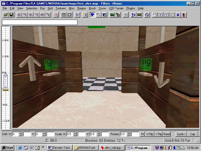 First start off by building the elevator cab, the part the player rides in, in radiant. I made a simple cab that was open on all sides.