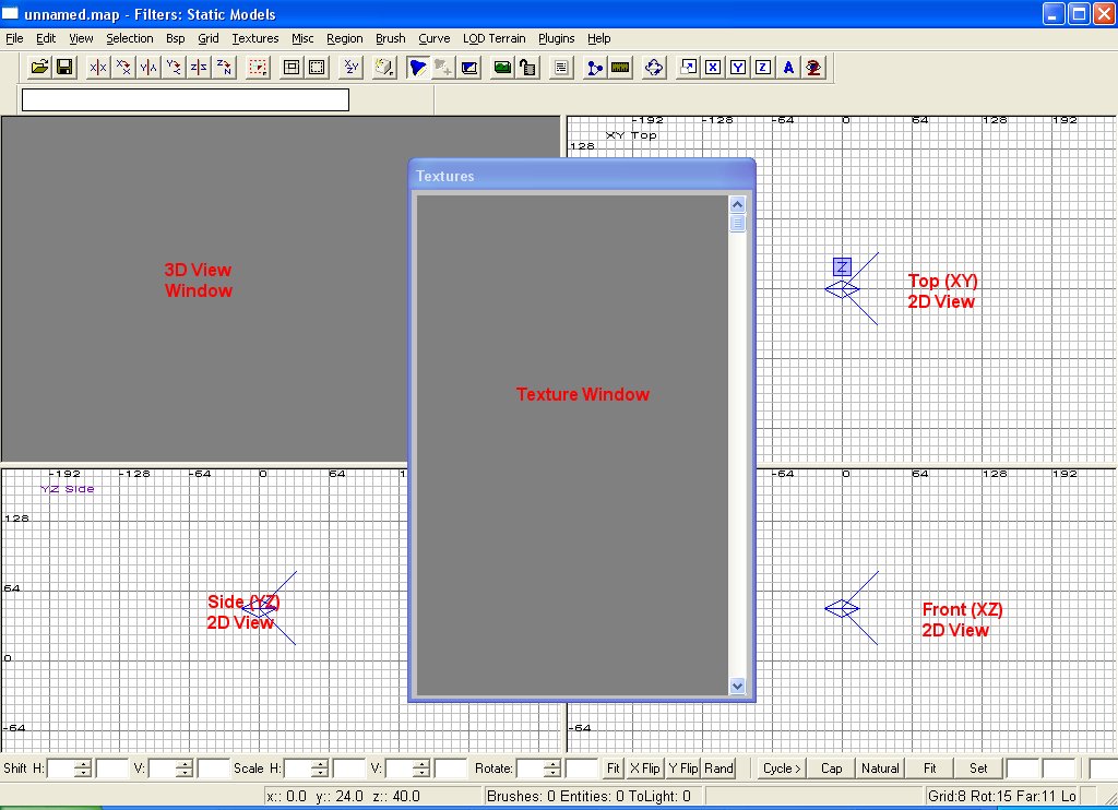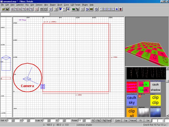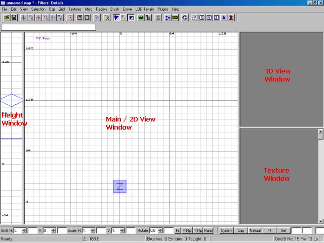 MoH Radiant main screen.Part A shows the Z Axis, ie