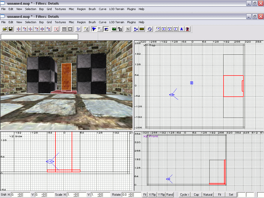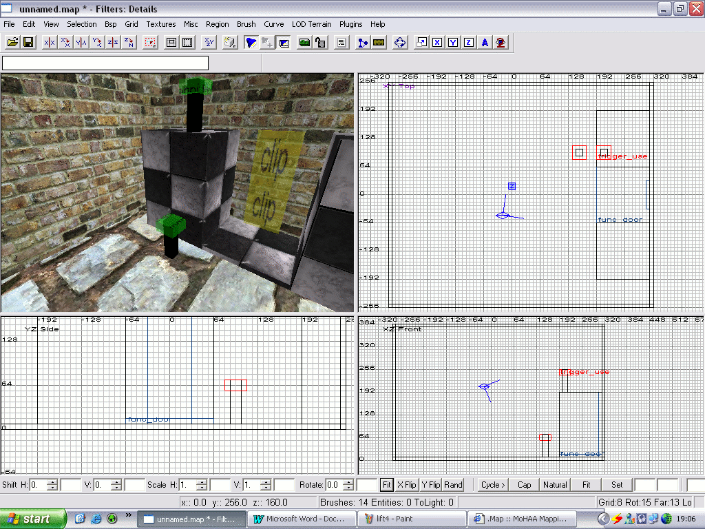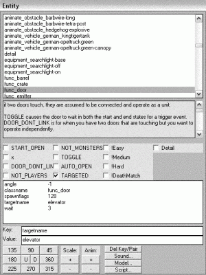 Now select your entire elevator and the ‘Clip’ texture and give them a ‘func->door’